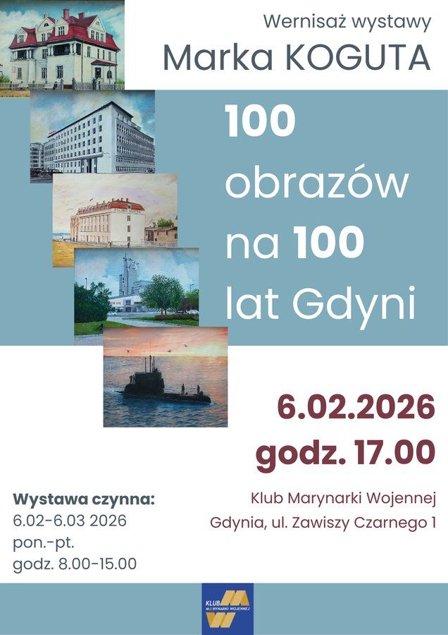 Klub Marynarki Wojennej włącza się w obchody 100. rocznicy powstania Gdyni i z tej wyjątkowej okazji zaprasza na wernisaż malarski Marka Koguta „100 obrazów na 100 lat Gdyni”.